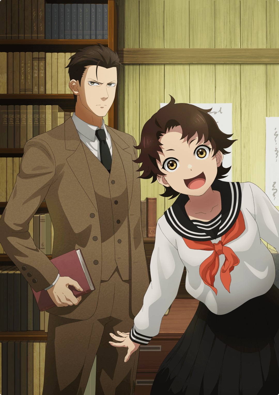 Приготовьтесь к невероятному путешествию, где переплетаются фантастика, фэнтези, экшен и романтика! Герои бросают вызов судьбе, сражаются за свои идеалы, влюбляются и попадают в самые неожиданные приключения. Вас ждут эпичные битвы, магические миры, искромётный юмор и вдохновляющий дух сёнен — всё, за что мы любим аниме. Смотреть аниме онлайн бесплатно в хорошем качестве на русском языке можно на Анимедия Онлайн — лучшие истории, захватывающие эмоции и любимые жанры ждут тебя прямо сейчас! Последствия Второй мировой войны оказали глубокое влияние на японское общество, оставив шрамы, которые было трудно залечить. Зверства тех лет бросили длинную тень на нацию, и воспоминания об ужасах, которые развернулись, все еще были свежи в памяти многих. Было нелегко стереть позор провалившейся фашистской миссии, и жестокость войны нельзя было скрыть или забыть. В годы после войны Япония столкнулась с бурным периодом восстановления, когда люди стремились преодолеть разрушения и начать все заново. Этот период обновления также ознаменовался быстрым развитием различных аспектов японского общества, поскольку страна медленно восстанавливала свои позиции. В 1948 году Токио, хотя и бурлил надеждой на восстановление, все еще напоминал город в руинах, изо всех сил пытающийся вернуться к жизни. Среди этой атмосферы перемен начала разворачиваться необычная история, которая переплетет жизни старшеклассника и таинственного учителя. Канна Кусакабэ, ученица второго года старшей школы, изо всех сил старалась жить нормальной жизнью посреди окружавшего ее хаоса. Она перешла на следующий класс и теперь усиленно готовилась к выпускным экзаменам, надеясь поступить в престижный университет. Однако, несмотря на ее решимость сосредоточиться на учебе и будущем, Канна оказалась втянутой в череду странных событий, которые она не могла объяснить. Она часто оказывалась в ситуациях, когда границы между реальностью и сверхъестественным, казалось, стирались, вызывая у нее беспокойство и замешательство. Эти тревожные происшествия оставляли у нее больше вопросов, чем ответов. Именно в это время неопределенности Канна встретила нового учителя, Акихико Чузендзи. Человек с задумчивым поведением, Акихико часто терялся в собственных мыслях, казался оторванным от окружающего мира. Казалось, он нес на себе тяжелое бремя, и его холодное, отстраненное присутствие делало его загадкой для учеников. Несмотря на его странную ауру, Канна быстро поняла, что Акихико не похож на других учителей в ее школе. В нем было что-то большее, что-то, что выделяло его, но она не могла понять, что именно. По мере того, как странные события вокруг нее усиливались, Канна чувствовала непреодолимую потребность найти ответы. Она пыталась разобраться в происходящем самостоятельно, но ничего не подходило. В отчаянии она обратилась за помощью к Акихико, чувствуя, что у него есть ключ к пониманию происходящего. Она была уверена, что он что-то знает — что-то, что могло бы объяснить тревожные вещи, которые она переживала. Поиски ответов Канной вскоре приведут ее на путь, который она никогда не могла себе представить, на путь, который не только раскроет секреты ее собственных страхов, но и раскроет скрытые глубины таинственного учителя, Акихико Чузендзи. Вместе они начнут раскрывать правду о сверхъест